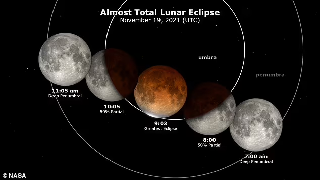 When that happens a small part of the Moons surface is covered by the darkest central part of the Earths shadow called the umbra. The rest of the Moon is covered by the outer part of the Earths.